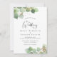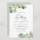 Seu convite refletirá a beleza e a alegria de seu próximo dia de casamento com este elegante design com aquarelas de eucalipto verde com sotaques de ouro e "o Casamento de" escrito em um bonito roteiro de na moda.