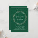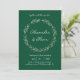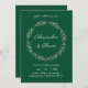Celebre o amor com este elegante convite de casamento verde que inclui uma delicada coroa de folhas e fontes clássicas de guião. Perfeito para um casamento no inverno inspirado na natureza, este design combina simplicidade e sofisticação. totalmente personalizável para incluir sua data especial, nomes e detalhes do local.