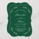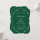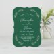 Celebre o amor com este elegante convite de casamento verde que inclui uma delicada coroa de folhas e fontes clássicas de guião. Perfeito para um casamento no inverno inspirado na natureza, este design combina simplicidade e sofisticação. totalmente personalizável para incluir sua data especial, nomes e detalhes do local.