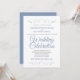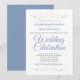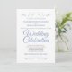 Este belo convite para o casamento apresenta um simples e clássico design de textos azuis e cinzas em fundo branco com bordas florais de folha fina prateada. Chic e design elegante que é formal e simples, com belas letras de escrita.