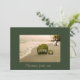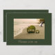 Este convite romântico mostra não apenas um casal feliz no fundo, mas também uma cena de praia excelente com as palavras de Amor numa folha verde.
