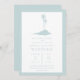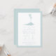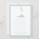 Um convite de casamento simples e moderno, com uma ilustração azul de uma ilha com duas palmeiras. Borda, texto personalizado e lado oposto também são azuis.