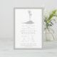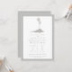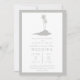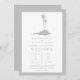 Um convite de casamento simples e moderno, com a ilustração de uma cinza de uma ilha com duas palmeiras. Borda, texto personalizado e lado oposto também são cinzas.