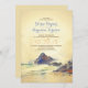 Absolutamente romântico, elegante e único convite para o casamento na praia, com a técnica pintada à mão de água - mar azul lacrimogêneo, areia esticada e rochas costeiras.