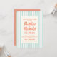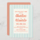 Convite retro de casamento encantador com listras azuis pastéis, nomes ousados escritos à mão e um design lúdico, mas elegante. Perfeito para casamentos ecléticos, brancos e inspirados em Wes Anderson.