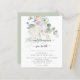 Bolso de Orçamento Florais Eucalyptus Convite para Casamento. Um alternativo de 4,5 pol x 5,6 pol com preço inferior. Disponível em um STOCK DE CARTÃO SEMI-GLOSS 110 lb, que é a opção padrão (mais espesso para convites), OU um STOCK de PAPEL THINNER FINISH 80 lb FINISH (ideal para gabinetes). Os envelopes são um extra opcional e são ligeiramente maiores que o tamanho da placa. Uma florada de flores boêmicas e folhas de eucalipto decora o topo com uma camada de gradiente e a tipografia parcialmente sobreposta e centrada abaixo da qual você pode facilmente personalizar. Um plano de fundo verde de sábio de coordenação está na parte de trás, que você pode mudar para outra cor se desejar por meio da opção personalizar mais.