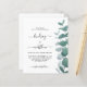 Convide a família e amigos para a celebração do seu casamento com este elegante convite de casamento orçamentário. É decorado com impermeabilização de eucalipto em tons de verde. Personalize este convite com os seus nomes e detalhes. Use a Ferramenta Design para alterar o tamanho, o estilo ou a cor do texto. Porque nós criamos a nossa trabalho de arte, você não encontrará esta imagem exata de outros designers. Original Watercolor © Michele Davies.