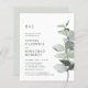 Convite De Casamento Eucalyptus Elegante De Watercolor Elegante RSVP No Site De Orçamento... Nosso convite de casamento botânico barato apresenta uma elegante ramificação de eucalipto de aquarela em tons verdes empoeirados, colocando o texto do convite ao lado dele. A frente do convite também inclui o site de casamento onde seus convidados podem RSVP e ver todos os detalhes normalmente enviados em um pacote de casamento. Este convite de casamento "tudo em um" do estilo moderno foi projetado para ser elegante e consciente do orçamento... para não mencionar a economia de tempo. Todo texto de exemplo pode ser facilmente revisado com suas próprias informações sobre o modelo de personalização. NOTE: O cartão "Orçamento" não é exatamente o mesmo que os convites tradicionais de cartão simples. Nossos cartões de orçamento são de 4,5 x 5,6 polegadas feitos de papel semirbrilhante de 110 lb comparado com os tradicionais cartões planos de convite de casamento de 5 x 7 polegadas em papel mate de 120 lb. Além disso, os cartões de orçamento não vêm automaticamente com envelopes, assim como os cartões de convite tradicionais, mas você pode comprá-los na mesma página na saída, se desejar. Este design de orçamento RSVP do site de casamento também está disponível em um cartão de convite de casamento tradicional 5x7.