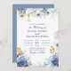 Este moderno convite para o casamento floral apresenta um design de destaque ousado, acentuado com rosas azuis elegantes e detalhes botânicos do ouro. Os elementos de aquarela e o emparelhamento sofisticado de fontes criam uma sensação eterno e romântica, perfeita para casamentos clássicos, jardins ou formais. Personalize com seus nomes, data, hora, local e muito mais. Este esquema elegante coloca ênfase na data do casamento, fazer prático e bonito. Ideal para casais que querem uma reviravolta moderna em papelaria floral clássica. Itens correspondentes disponíveis em nosso compro.