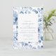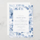Adicione um pouco de sofisticação ao seu casamento com estes Convidados de Casamento Floral Azul Elegante. Apresentando um delicado design floral de aquarela em azul e branco clássicos, esses convites são perfeitos para recepções de casamento, chás de panela e festas de noivado. Na moda e eterno, eles dão o tom para sua celebração especial com elegância e charme.