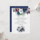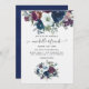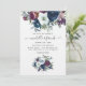 Rosas brancos, azuis e bordo de aquarelas e peonias florais Sr. e Sra. convite de casamento com tipografia elegante personalizável para suas especificidades de evento.