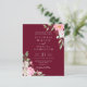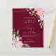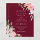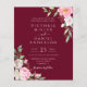 Um elegante convite para casamento no orçamento floral com flores cor d'água cor-de-rosa com caligrafia moderna manuscrita em fundo vermelho-burgundy.