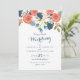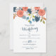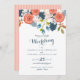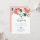 Uma ilustração adorável enfeita este Primavera ou este jardim de Verão, um convite temido de casamento que é enfeitado com flores de damasco e corais, flores de cereja cor-de-rosa e esbranquiçada, botões florais azuis e um verde-sorvido. O esquema de cores azul e de damascos é moderno e contemporâneo. Disponível também em vários estilos de tipografia e formato diferentes.