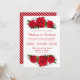 Incêndio aos seus convidados com este elegante convite de casamento floral com belas rosas vermelhas com tipografia moderna contra um fundo branco. Basta adicionar os detalhes do seu evento neste modelo fácil de usar para torná-lo um convite de tipo único. Sacudir a placa para revelar um padrão de listras vermelhas e brancas na parte traseira da placa.