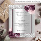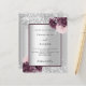 Fundo de aspecto fino prateado decorado com flores, flores, flores e brilho fino prateado, brilhos. Personalize e adicione seus nomes e detalhes do casamento. Letras negras.