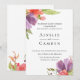 Delicar violeta e cor d'água vermelha arranjos florais sobre fundo branco, convite para casamento. Personalizar texto, estilo de fonte, cor e tamanho.
