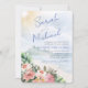 Um belo roteiro de tamanho excessivo em um design floral e de paisagem de praia faz um convite para casamento encantador e moderno que é fácil de atualizar.