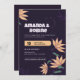 Celebre seu grande dia com este convite ousado e vibrante para o casamento. Apresentando um fundo roxo escuro com sotaques florais cor de laranja tocantes e tipografia moderna e crocante, esta design é perfeita para casais que querem que seu convite de casamento se sinta singular, viva e cheio de personalidade. Perfeito para: Casamentos modernos ou não tradicionais Jardim casual ou Casais de festas noturnas com uma estética divertida e ousada