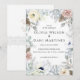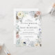 Branco, Prata, Marfim, cor-de-rosa Blush Blue Florals com elementos do convite para casamento da natureza. Flores pastéis bonitas, elegantes e românticas com toques de galhos de pínus, bagas e pínus.
