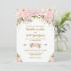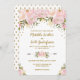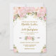 Convite de casamento feminino, cor-de-rosa e ouro, com flores cor-de-água rosa e pinceladas e borrifadas de ouro confetti