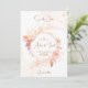 Um belo convite de casamento elegante num design floral cor-de-rosa. Esta design moderna é perfeita para aqueles que amam a simplicidade com um toque de chic. Perfeito para casamentos e qualquer ocasião especial como festas, aniversários, quinceaneras, doces 16 ou outras celebrações. A frente do convite apresenta um design floral semelhante a uma coroa com toques de pêssego. No verso, há um código QR que o levará a um site gerado por código QR se você decidir usá-lo. O verso também apresenta um design fotográfico desbotado que você pode remover facilmente para colocar em sua própria fotografia pessoal.