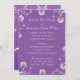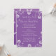 Este convite de casamento totalmente personalizável apresenta um fundo roxo com flores brancas destacando as bordas e as letras brancas. Personalize com os nomes do noivo e do noivo, localização e hora da cerimônia. Personalize a fonte ou qualquer outra coisa clicando no botão Personalizar!. ppl001