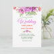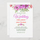 O convite para o casamento floral elegante apresenta um buquê de rosas de aquarela em tons de folhas florais roxas e senhas verdes e peludas de botânica. A parte de trás do convite tem a noiva e o monograma do noivo. Este design é totalmente personalizável. Você pode alterar ou excluir todas as imagens e textos.