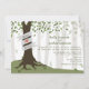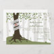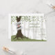 Um convite de casamento que ilustra uma árvore com raízes numa colina de grama verde. A árvore tem o banner embrulhado ao seu redor. Personalize com nomes.Linha de árvores no fundo. Folhas são verdes. Personalize o texto com detalhes da sua ocasião. A redação é da noiva e do noivo.
