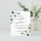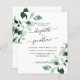 Este elegante convite de casamento botânico verde moderno apresenta folhagem de aquarela pintada manualmente e roteiro de caligrafia moderno. Um convite de casamento botânico moderno no esmerald green. Você pode personalizar o texto, o estilo da fonte, a cor e o tamanho em frente e atrás do convite. Por favor, foi livre de me contactar para encontrar itens correspondentes.