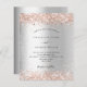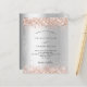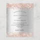Um fundo de olhar mal prateado. Decorado com rosa dourado falso brilho. Personalize e adicione seus nomes e detalhes. 1 folha = 1 convite impresso de borda a borda.