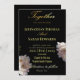 Convidado para casamento formal Dourado e negro convidem seus amigos, família e parentes distantes para sua cerimônia de casamento com este convite de casamento formal, maravilhosamente elegante, preto e ouro, escrito. Um design muito tradicional criado para a cerimônia de casamento tradicional. As edições personalizadas verticais do tamanho 5x7 neste convite de casamento incluem: 1. Nome do grupo 2. Nome da marca 3. Data da Cerimônia 4.Hora da Cerimônia 5. Local de Casamento