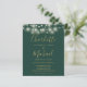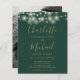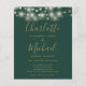Apresentando luzes de string bonito e nomes de estilo de assinatura. Este elegante convite de casamento verde-esmeralda e ouro pode ser personalizado com seus detalhes de casamento em carta chique e foto especial no verso. Projetado por Thisnotme©