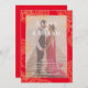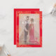 Um convite de casamento ao estilo henna moderno com uma fronteira vermelha e uma tipografia elegante tradicional.