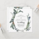 Este convite para casamento de verduras e verduras de inverno é perfeito para um casamento elegante. A elegante queda ou design de inverno apresenta uma paisagem verde-aquática moderna e folhas de azeitona escura com um toque de feriado rústico. Inclua mais detalhes (e informações de RSVP on-line opcionais) na parte traseira da placa para salvar o papel.