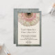 Um convite de casamento com uma imagem de uma margarida de gerbera rosa e branca no topo. A fronteira de todos os lados é o lenhador. Voltar é o Barnwood. Personalize o texto com detalhes da sua ocasião.