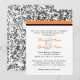Este convite clássico apresenta padrões impressão florais pretos e um toque de laranja com um bar que atravessa o topo na frente. Este belo e elegante convite de casamento é excelente para casamentos com cor laranja, branca e preta, ou durante os feriados. Procure por RSVP no meu compro!