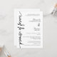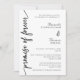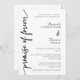 Este elegante convite de casamento preto e branco apresenta um layout limpo e moderno com roteiro e tipografia serif. A frase "promessa de eternidade" é escrita em na moda caligrafia ao longo do lado esquerdo, acrescentando um toque romântico. Os nomes do casal são realçados numa mistura de scripts e fontes sorif ousadas, dando um eterno ainda contemporâneo. Os detalhes da cerimônia e da recepção estão bem organizados em formato estruturado, fazer bonito e fácil de ler. Uma escolha perfeita para casais que querem um convite de casamento, mínimo e clássico.