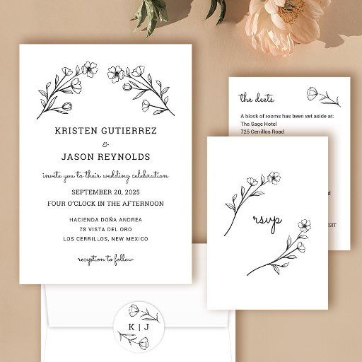 Convite para Casamento Mínimo de Flor Selvagem Ele
