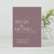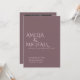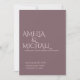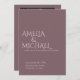 Um convite de casamento elegante e moderno da ameixa. Design de tipografia simples chic com estilo moderado. Nomes personalizáveis, data e detalhes para uma cerimônia moderna do eterno. Papelaria romântica perfeita para casais que buscam um convite de casamento único e elegante em roxo de ameixa e rosa-rosado.