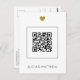 Se você está procurando estilo em um orçamento, aqui está. Este design minimalista tem apenas seus nomes, um coração de folha de ouro falso e um código QR. Este será um link para o seu site de casamento onde seus convidados podem RSVP, escolher suas opções de menu, música favorita, etc. Para aqueles que não têm um smartphone, você pode dar a eles o site na parte de trás disto com uma breve mensagem, conforme o exemplo. Incluído é uma fonte de assinatura para seu fechamento. Isso pode ser excluído e você pode escrever manualmente se preferir. Se desejar, pode colocar o endereço do convidado em vez das linhas. Poupando mais tempo.