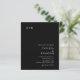 Convite para casamento de orçamento moderno com um layout simples e minimalista com seu monograma no canto superior esquerdo e seus detalhes de casamento no canto inferior direito. O fundo tem sua foto favorita. Todos os elementos de design estão em branco sobre um fundo preto e podem ser alterados na ferramenta de edição de design. Este convite de casamento chic com um design mínimo, mas elegante, vai bem com qualquer estilo de casamento contemporâneo.