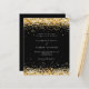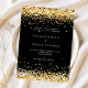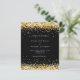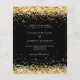 Um convite de casamento moderno. Fundo preto decorado com confete de ouro falso. Personalize e adicione seus nomes e detalhes do casamento. Letras brancas coloridas. 1 folha = 1 convite impresso de borda a borda.