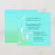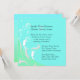 convite de casamento personalizado para o tema na moda Beach feito em aquamarine e hortelã verde. Gráficos de dois cavalos marinhos brancos, bolhas de água e floreios, feitos em branco, decoram o canto inferior esquerdo do convite. O texto em preto é totalmente personalizável e pronto para personalizar, para seu dia especial. Excelente para casamentos de praia.