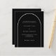 Um convite de casamento elegante. Um fundo preto com um arco na frente. 1 folha = 1 convite impresso de borda a borda.