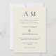 Lindos monogramas de noiva e noivo no topo deste belo convite de casamento. Fundo Ecru com uma fonte azul profunda para coordenar com a angustiada parte azul do convite elegante. Absolutamente respiração.