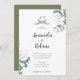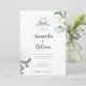 Celebre o seu casamento com este elegante convite de casamento para eucaliptos modernos, maravilhosamente desenhado com folhas de aquarela delicadas e caligrafia graciosa. Os tons verdes suaves e o layout botânico oferecem uma estética fresca e sofisticada — ideal para casamentos contemporâneos com tema natural ou de jardim. Personalize com seus nomes, data, local e muito mais. Perfeito para casais que querem misturar minimalismo moderno com verde romântico.