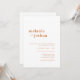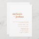 Este simples e moderno convite de casamento apresenta uma paleta de cor laranja e branca de cobre, uma fonte serif ousada para os nomes dos casais, uma fonte sans serif elegante e elegante para o texto do convite de casamento, e uma fonte manuscrita encantadora para um toque de elegância extra.