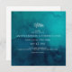 Este convite de casamento moody de aquarela do oceano é perfeito para o seu simples casamento tropical. Ele é projetado com folhas tropicais brancas minimalistas e um impressionante fundo azul-esverdeado.