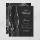A borda esquerda deste elegante convite de casamento moderno apresenta uma coloração aquosa preta e borda agitada com falso brilho prateado. O texto personalizável combina manuscrito, fontes em copperplate e itálico em cinzas prateadas leves em um fundo fora do preto. O verso apresenta um design de agata preto e prateado correspondente.