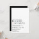 Um design moderno minimalista para os seus convites para o casamento. Este elegante cartão branco na frente com uma tipografia negra moderna. Os sotaques de pincel adicionam um toque de cor. O verso é preto, com o seu suporte inicial em branco e um suporte de cor azul.